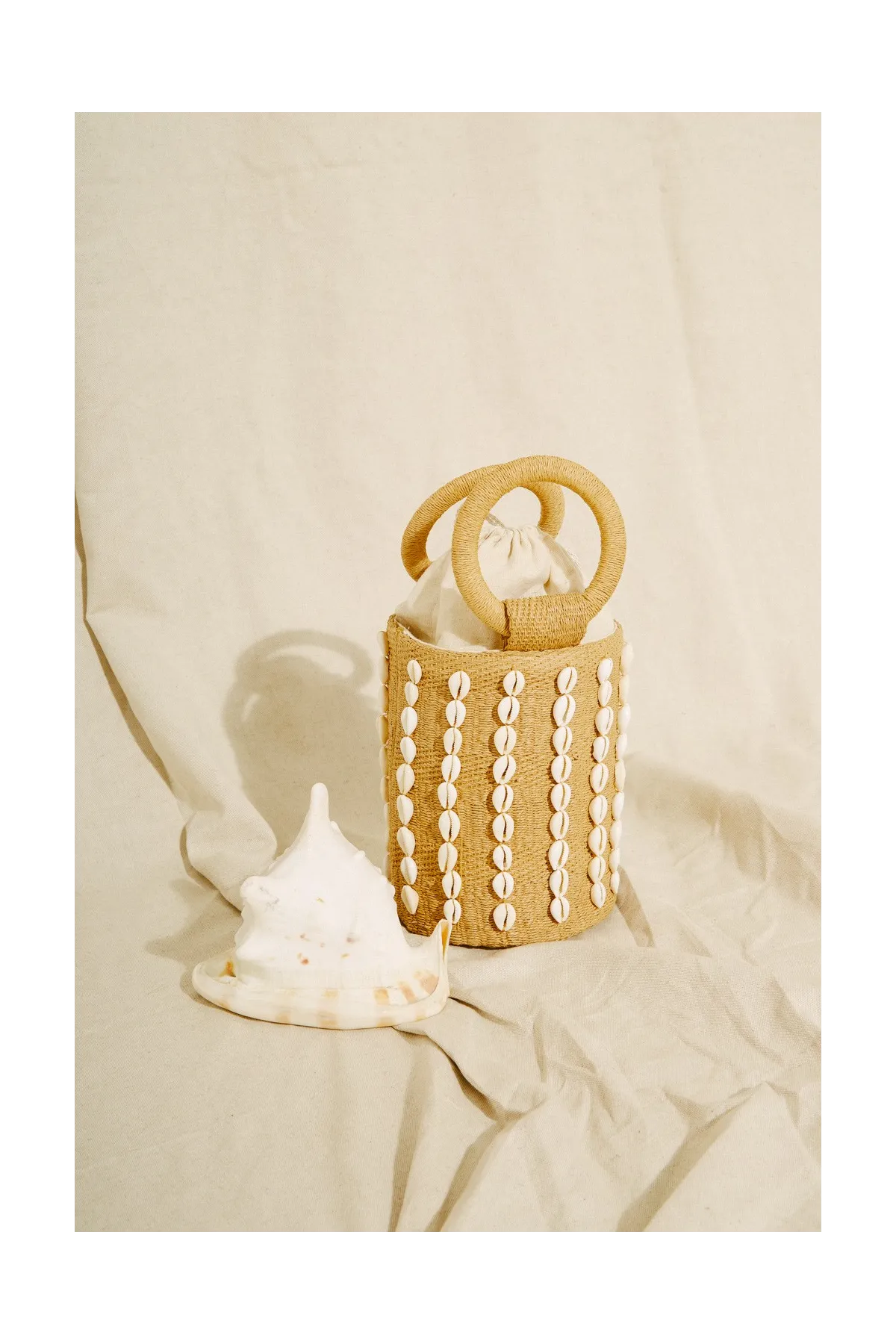 Joli sac à main en raffia entièrement brodé de coquillages,