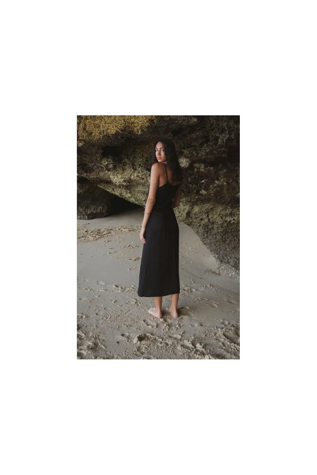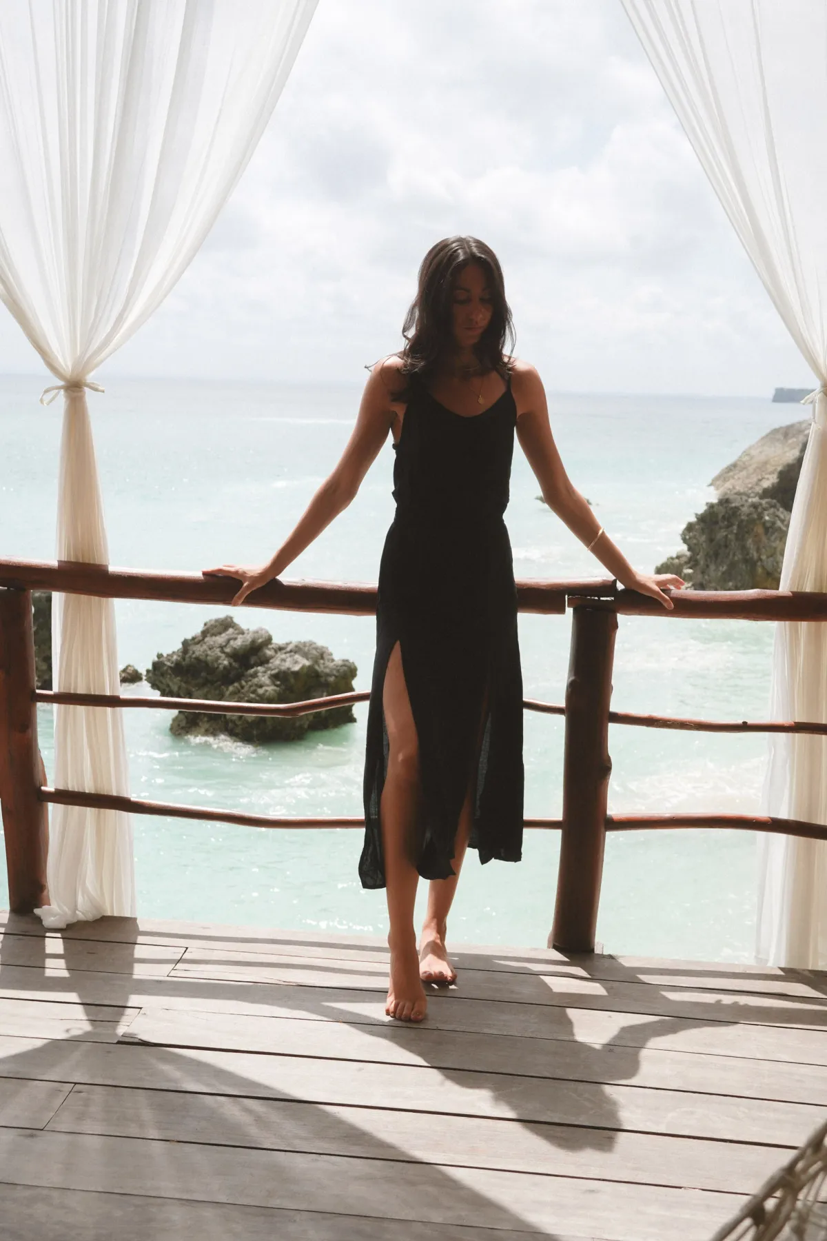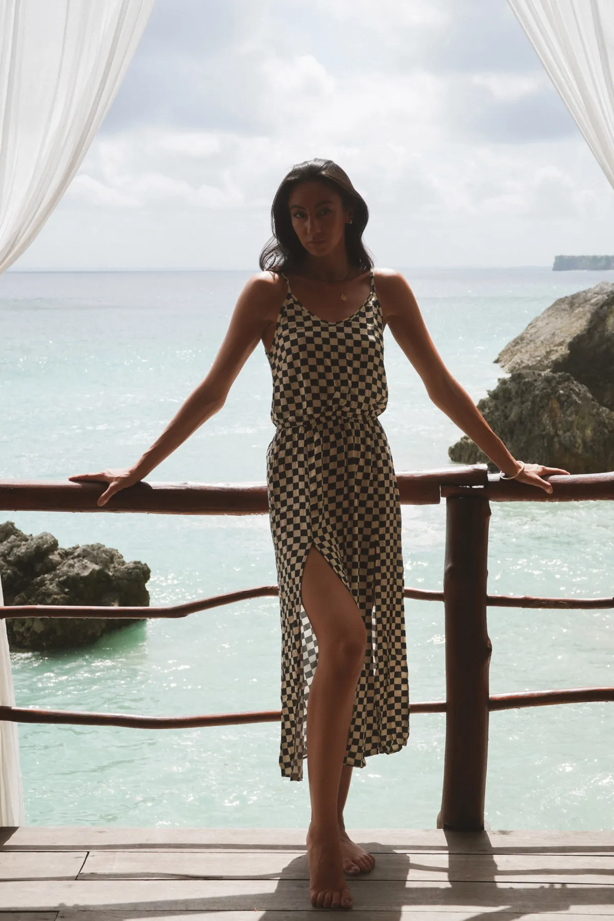 La robe Keramas, celle qui capte la lumière...et les regards.  Avec ses deux fentes élégantes sur les jambes, cette robe Pantai Pantai dessine une silhouette libre et féminine, tout en subtilité. Imprimé Riviera...