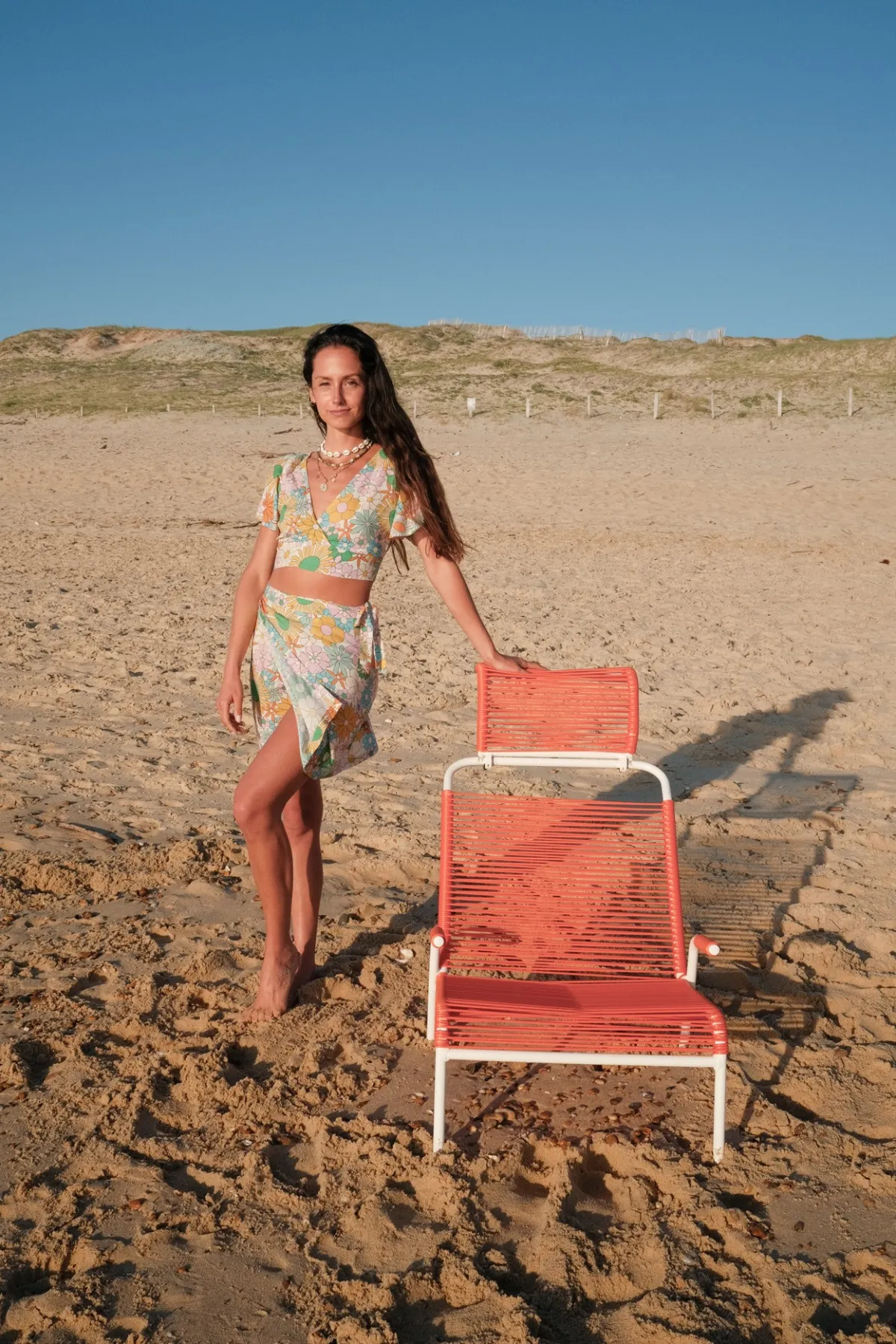Cette jupe portefeuille s'adaptera parfaitement à votre taille puisque c'est vous qui l'ajusterez en faisant un noeud sur le côté.