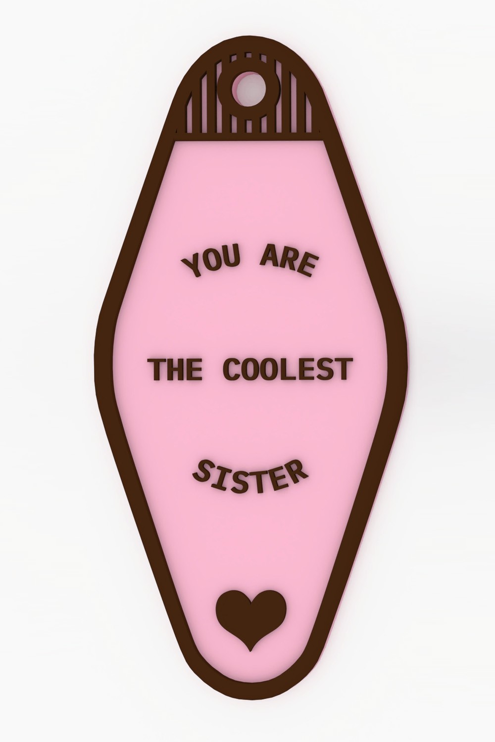 Porte clef motel 2 couleurs avec inscription " you are the coolest sister" tu es la plus cool des soeurs. c'est le petit cadeau à faire donc à sa soeur ;)