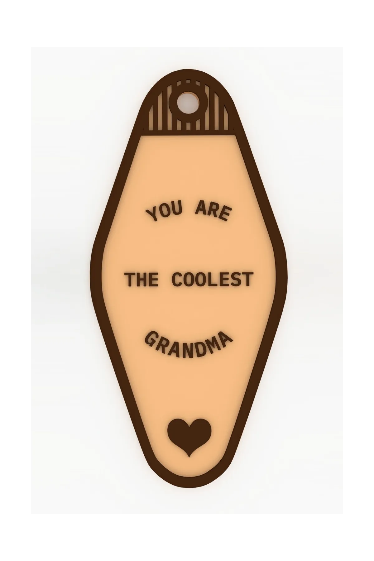 Porte clef motel 2 couleurs avec inscription " you are the coolest grandma". c'est le petit cadeau à faire à sa grand mère si vous êtes en panne d'idée et ça l'aidera à trouver facilement ses clefs dans son sac ;)